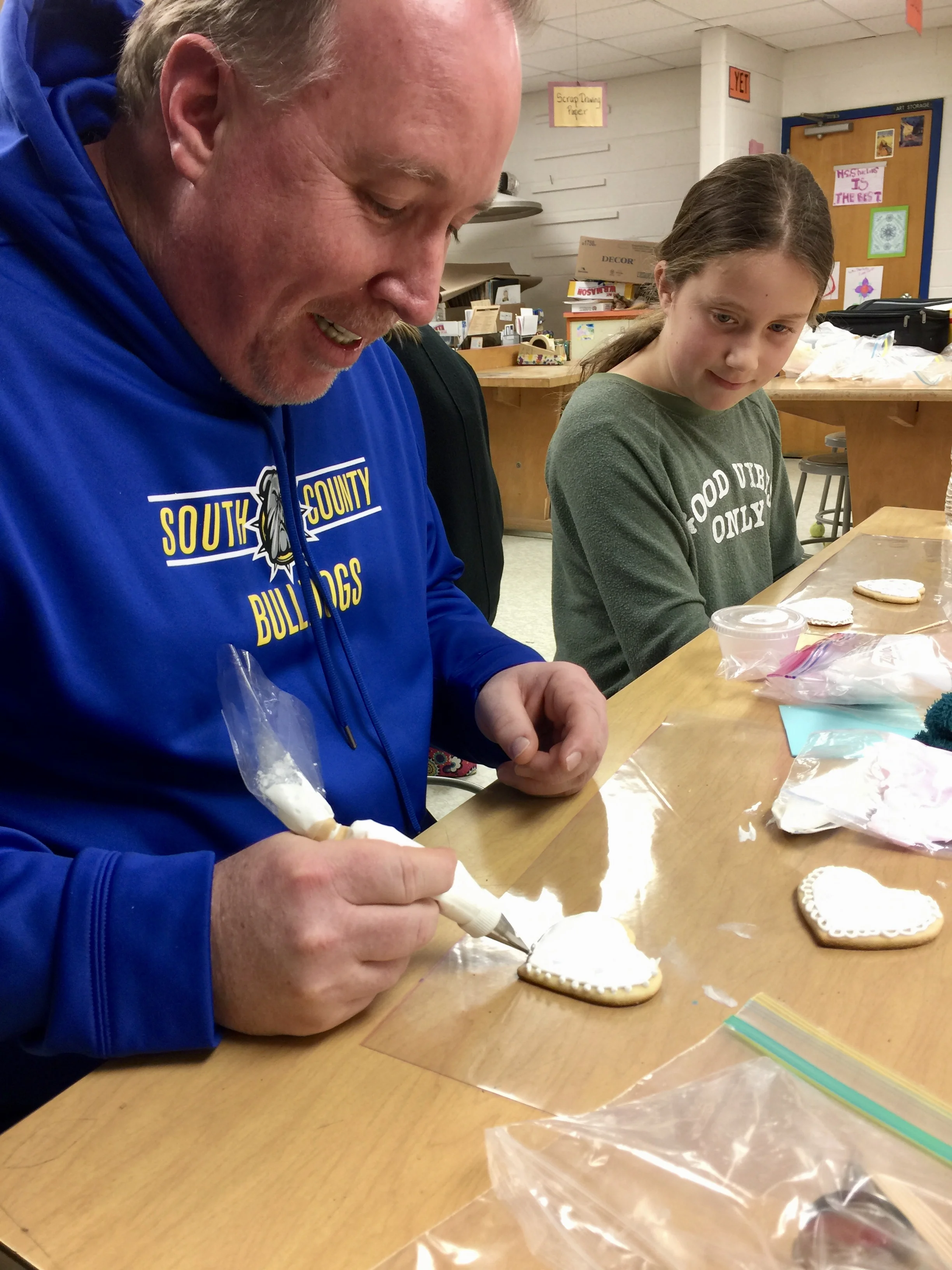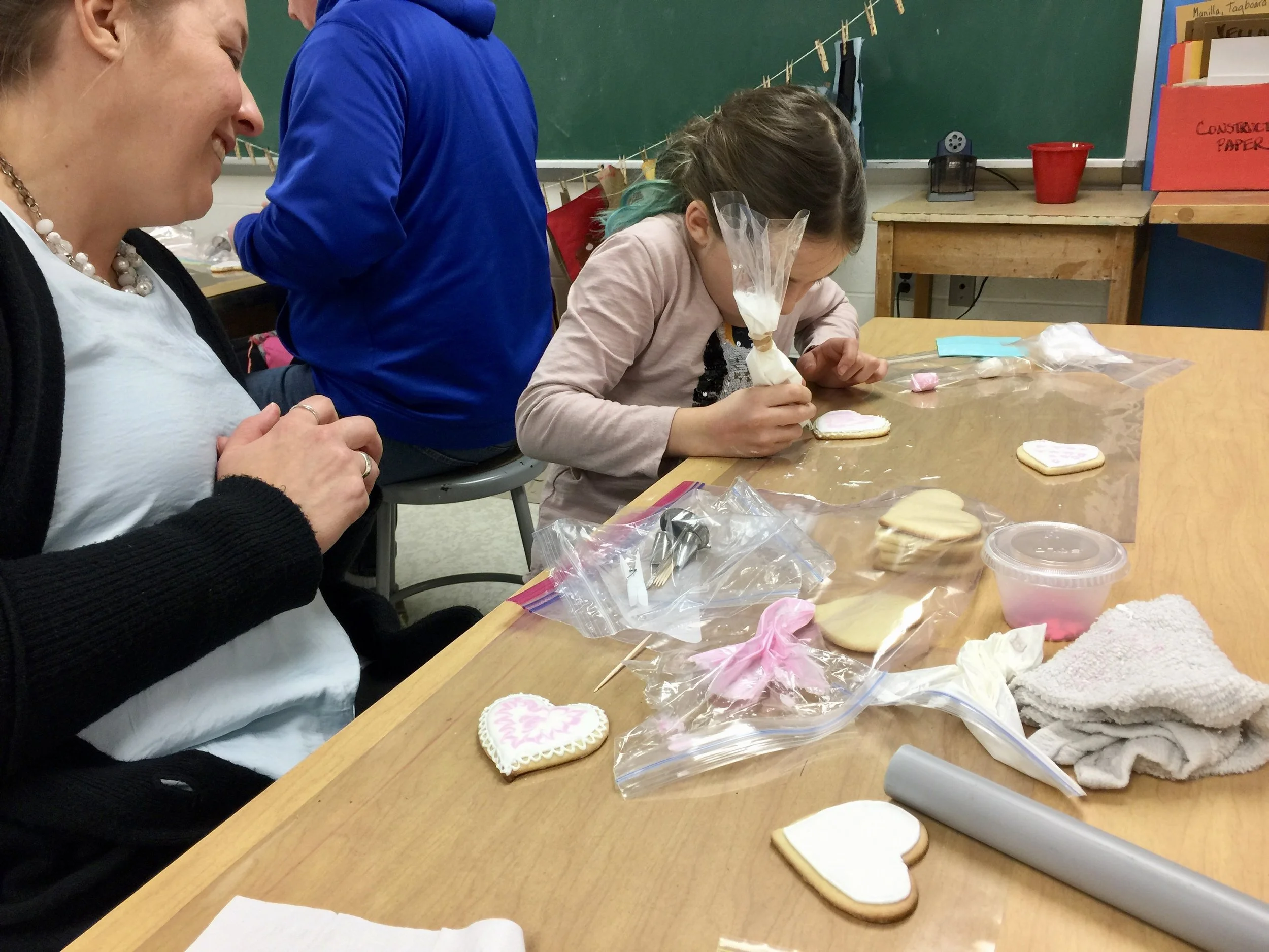 On Friday, February 3, 2017, Mr. Tuttle held a Valentine’s Day theme cookie decorating class from 4-7 for parents and their children in grades k-5.