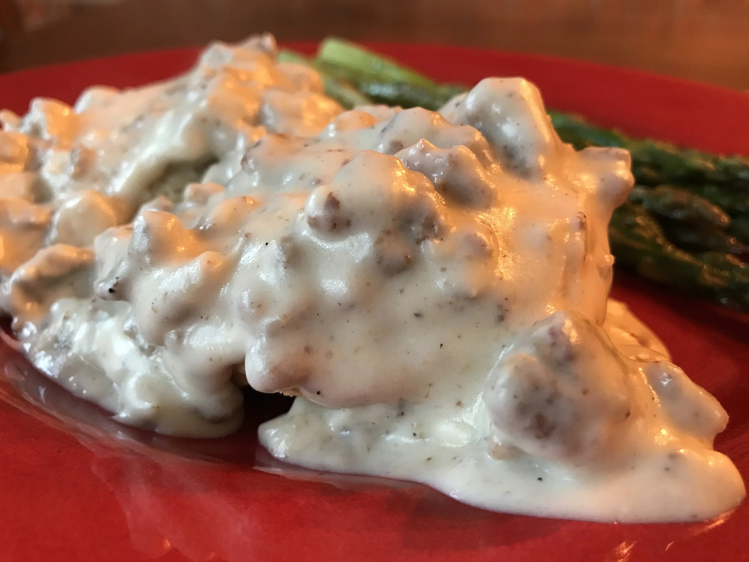 Life has to have balance and I choose to balance it with comfort food like sausage gravy with a side of healthy greens.