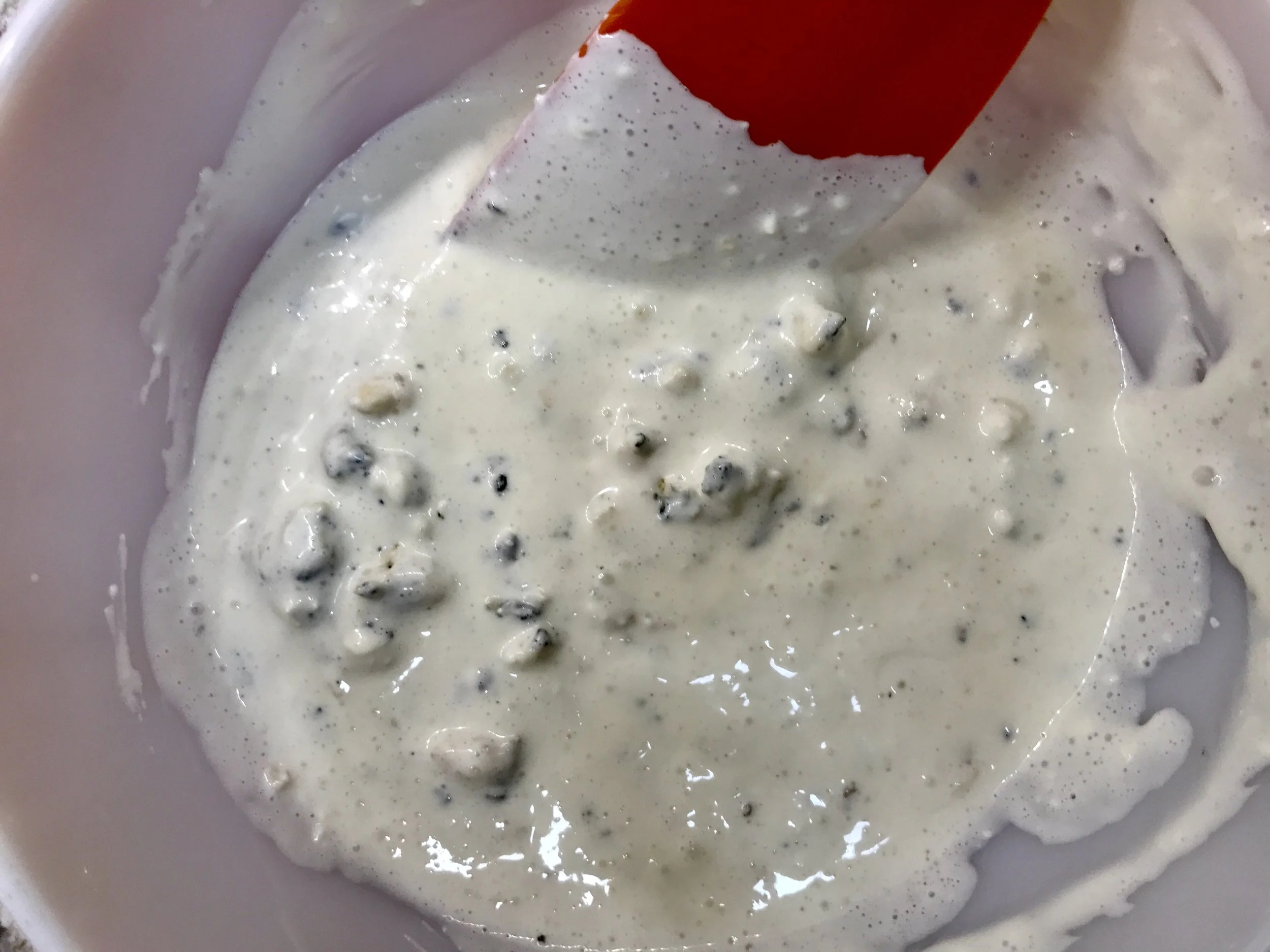 Fold in the crumbled blue cheese. I used Trader Joe's Stilton Blue Cheese for this recipe.